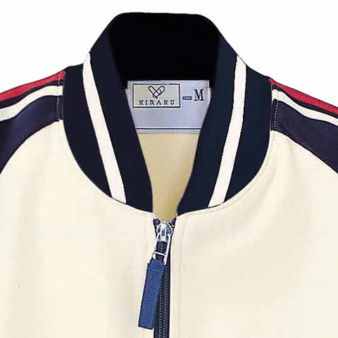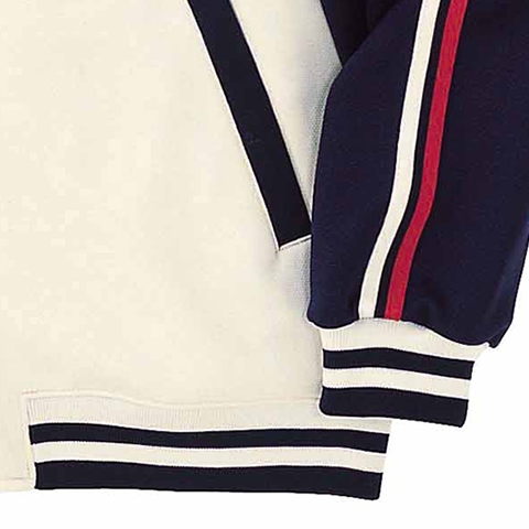 カジュアルテイストに機能性をプラスしたジャケット。高齢者の方が認識しやすい赤のラインがポイント。●サイズ:SS~3L● 色:オフホワイトXネイビー・ネイビーXオフホワイト●素材/ポリエステル95%、綿5% 【サニターEX防縮ニット】※制菌加工、防縮、吸汗、速乾